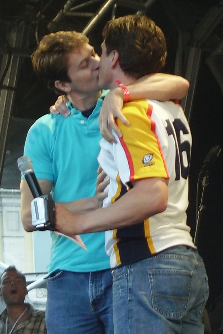 My mood was considerably lightened by this post. Lovely pics of Freema and John (and Scott) from the Gay Pride event last Saturday. And thank you